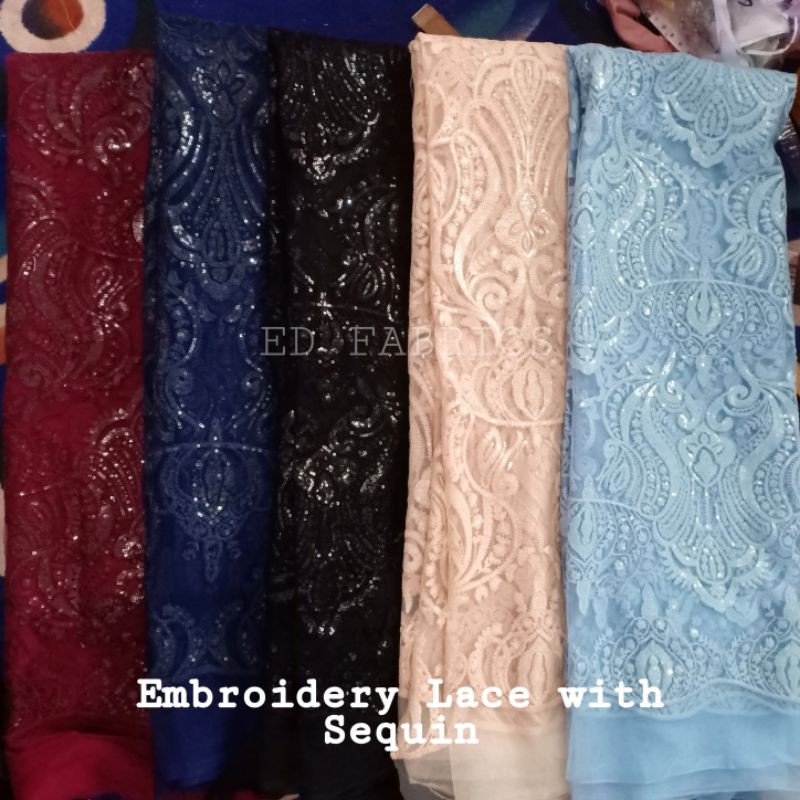 Kain Lace Embroidery With Sequin 60 Kain Lace Murah Shopee Malaysia